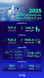 En 2025, le secteur de l'aviation civile du Royaume d'Arabie saoudite a réalisé une performance inédite, battant des records et atteignant ainsi les objectifs de la Stratégie nationale des transports et de la logistique, qui vise à faire du Royaume une plateforme de liaison mondiale entre les trois continents.