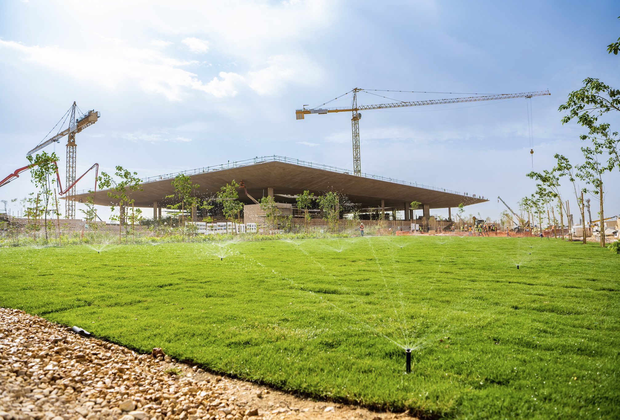 Dans le cadre d'une initiative environnementale majeure, le traitement du sol du jardin, représentant un volume impressionnant de 18 millions de mètres cubes, a été achevé, le rendant ainsi prêt à accueillir les espaces verts.